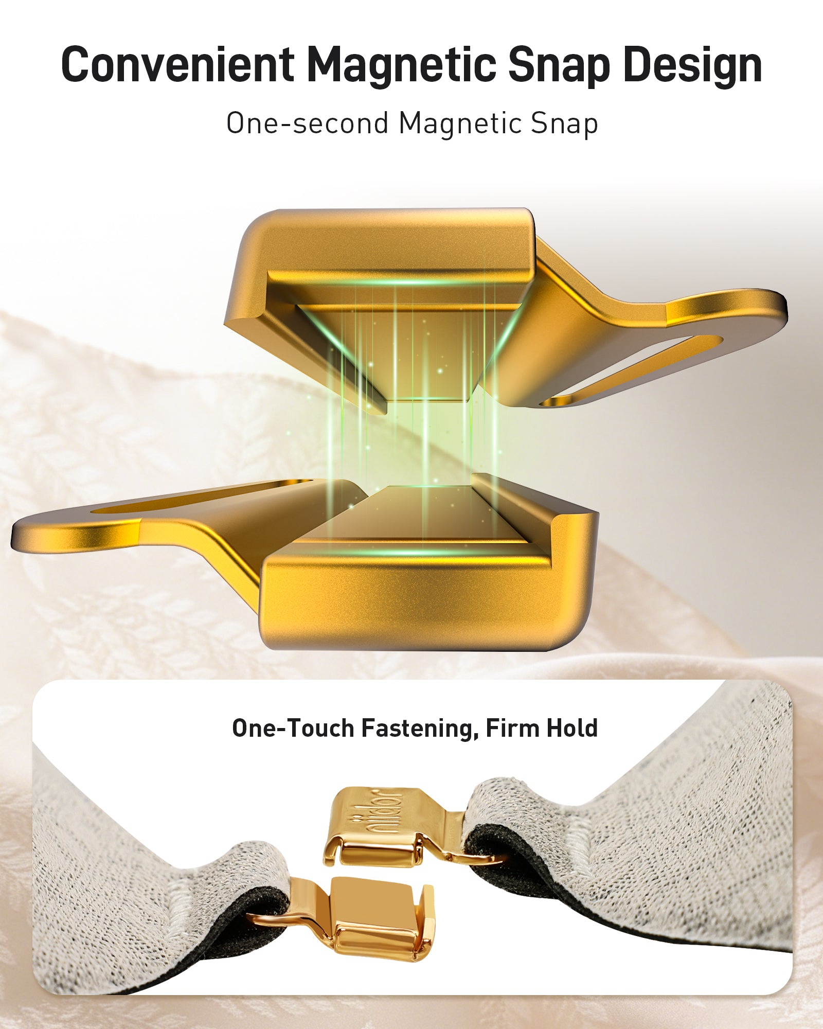 Say goodbye to fumbling with traditional hooks and clasps. Our innovative magnetic front clasp automatically snaps together with precision, making it effortless to put on and take off. The powerful yet gentle magnetic closure ensures a secure fit throughout the day while remaining completely invisible under clothing. This isn't just convenience—it's a game-changer for anyone who's ever struggled with traditional bra closures. The magnetic technology provides consistent, reliable hold without the pressure points or discomfort of metal hooks, creating a seamless experience from the moment you put it on.