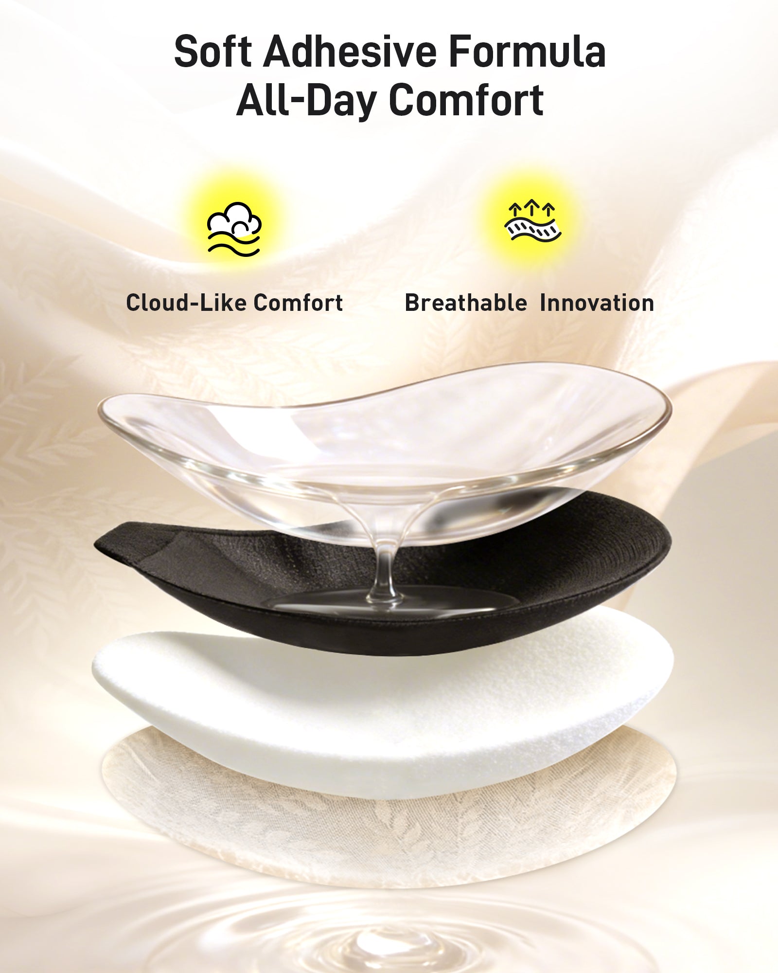 Why choose between the breathability of fabric and the security of adhesive when you can have both? Our patterned lace design combines the soft, skin-friendly comfort of premium fabric with the reliable hold of medical-grade adhesive. The result is a bra that feels as natural as your favorite lingerie while providing the invisible support you need for backless dresses, plunging necklines, and strapless tops. It's not just innovation—it's the evolution of intimate wear.
