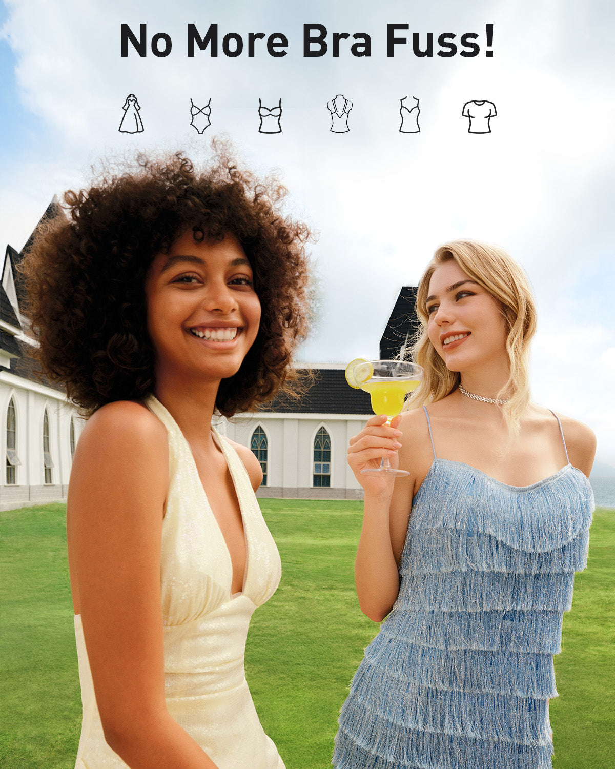 Before: allergic redness, visible nipple show, ruined silhouette. After: no strap marks, invisible smooth coverage, unrestricted comfort. Freedom to wear plunging V-necks, backless dresses, sheer tops. These nipple stickers eliminate visible bra lines and uncomfortable underwires.