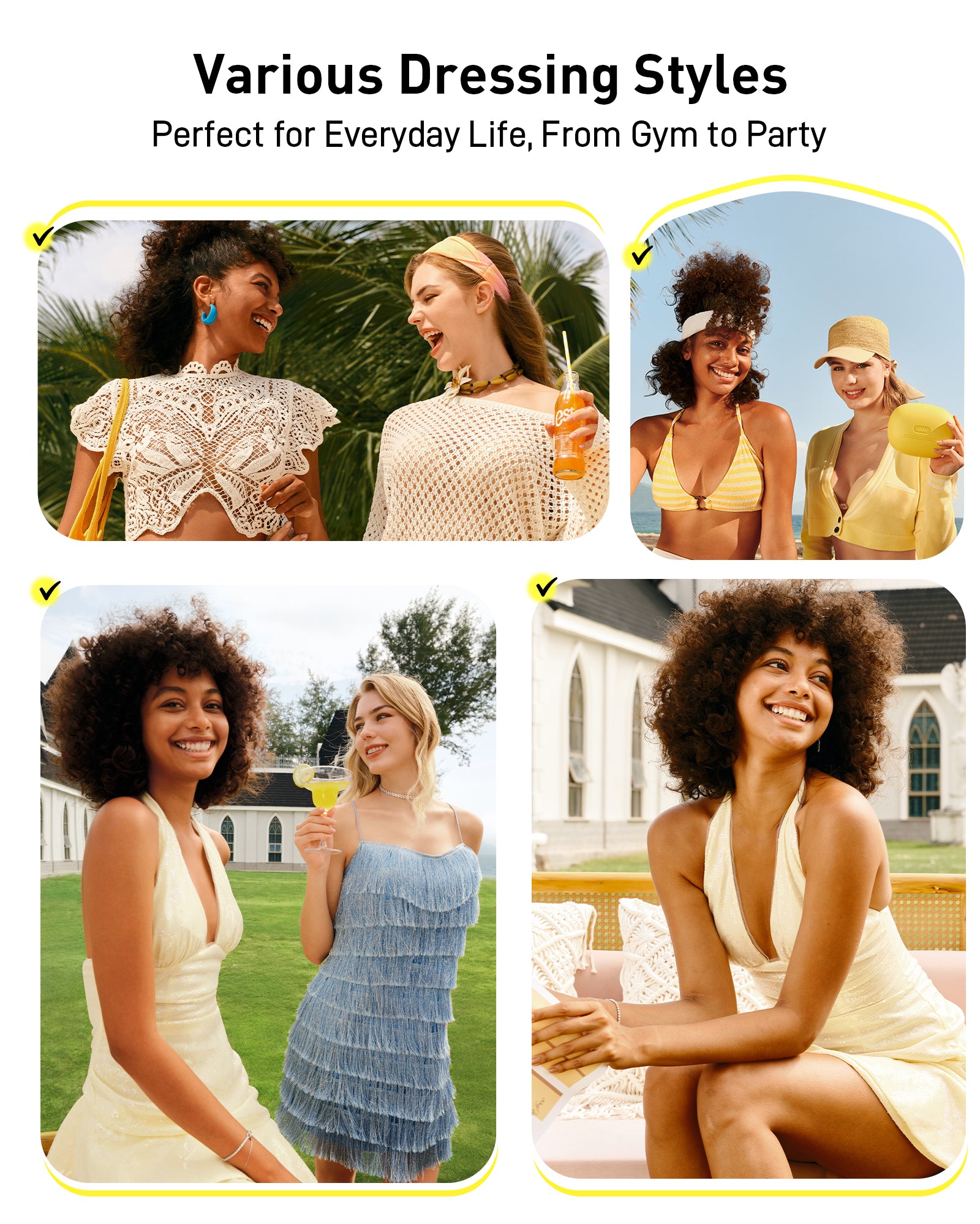 Choose between triangular and circular designs to perfectly match your outfit and coverage needs.