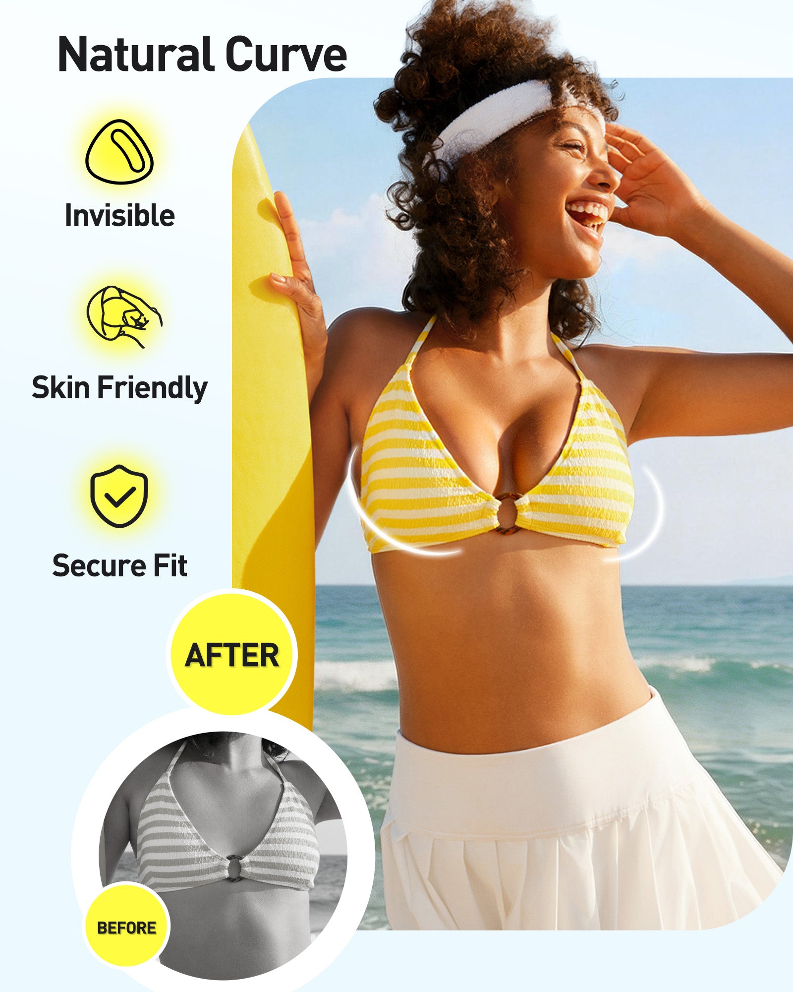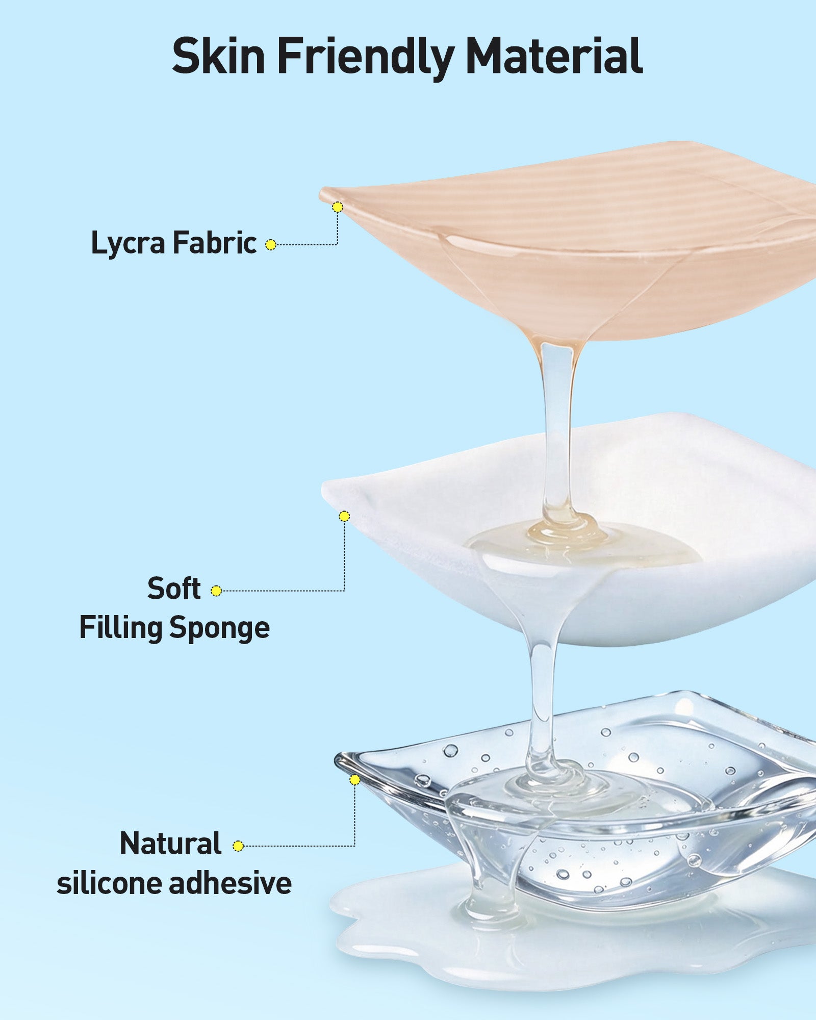 Every detail has been meticulously engineered for your comfort and confidence. The ultra-light weight ensures you barely feel them, while the ultra-thin profile disappears under even the most delicate fabrics. The double-sided adhesive technology provides secure placement without irritation, adhering gently to both your skin and your bra for all-day stability. The natural breast lift design follows your body's contours, creating enhancement that looks and feels authentic. And because they're washable and reusable, they're not just an investment in your wardrobe—they're an investment in sustainable, long-lasting confidence.